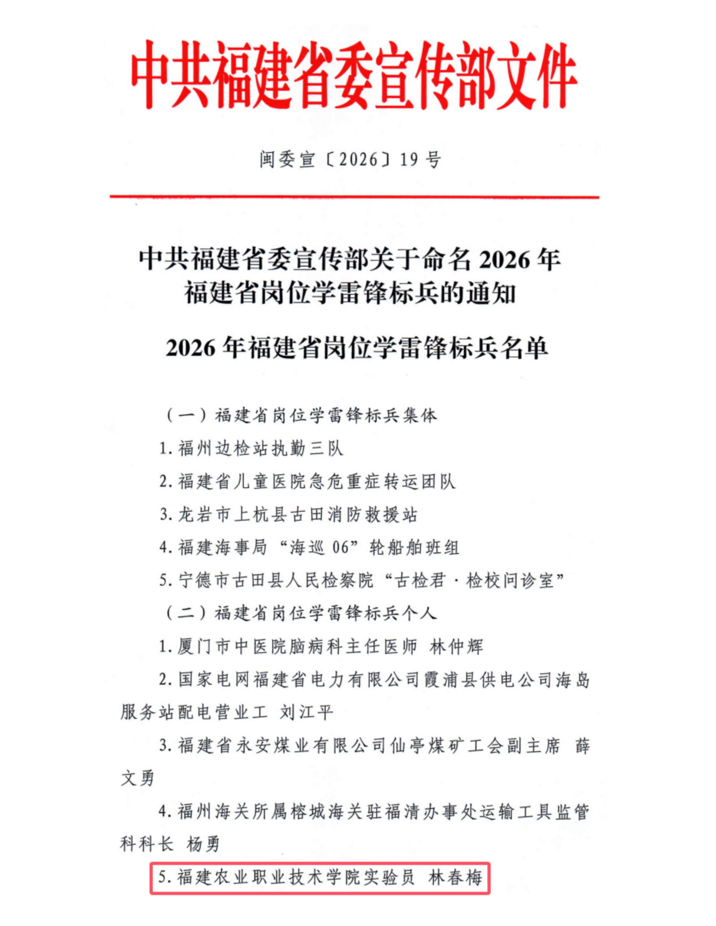 喜报|我院林春梅同志荣获“2026年福建省岗位学雷锋标兵”称号