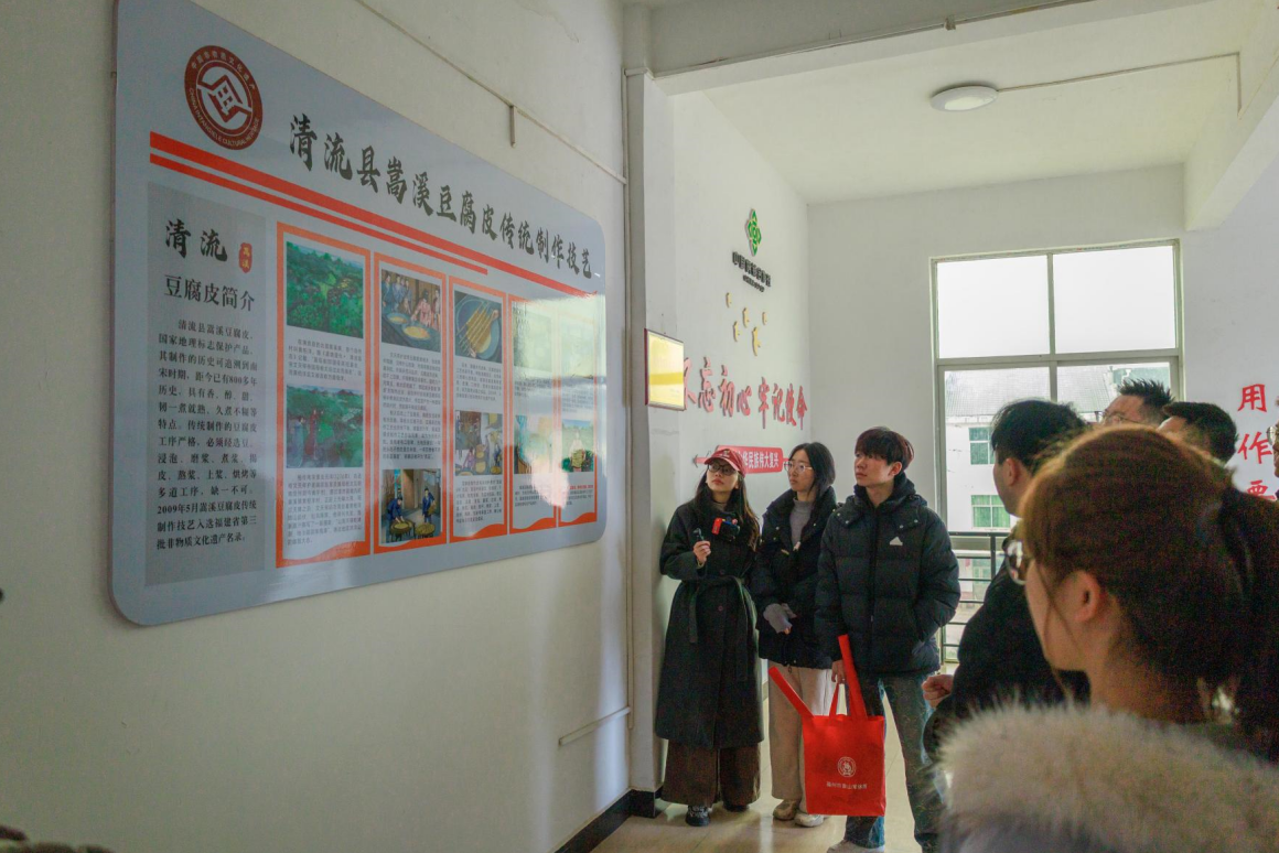 在嵩溪爱珍豆腐皮专业合作社,同学们深入调研“合作社+农户+品牌”的产业化发展路径。合作社通过统一技术标准、统一品牌销售、统一质量追溯的模式,带动当地农户实现稳定增收。通过了解“鑫珍”牌豆腐皮从手工作坊到获得国家地理标志保护产品、绿色食品认证的品牌发展历程,同学们认识到标准化生产体系与品牌价值建设对提升农产品附加值、推动乡村产业升级的关键作用,也让同学们对农业农村现代化的多元路径有了更立体的认识。