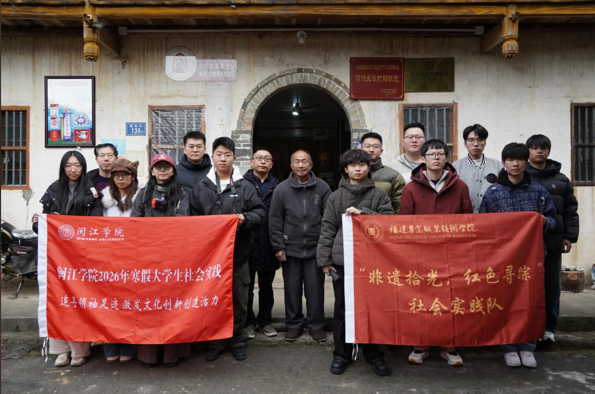 为深入贯彻落实习近平新时代中国特色社会主义思想和党的二十大精神,扎实推进“时代新人铸魂工程”,引导青年师生在躬身实践中坚定理想信念、锤炼过硬本领,近日,福建农业职业技术学院动物科技学院“非遗拾光,红色寻踪”实践队携手闽江学院服装与艺术工程学院“红途‘织’梦”实践队,共赴福建省清流县开展寒假社会实践活动。本次活动以“追寻领袖足迹,激发文化创新创造活力”为主题,通过“非遗传承、红色教育、乡村振兴”三条主线,精心打造了一堂行走在田间地头的大学生“思政大课”。