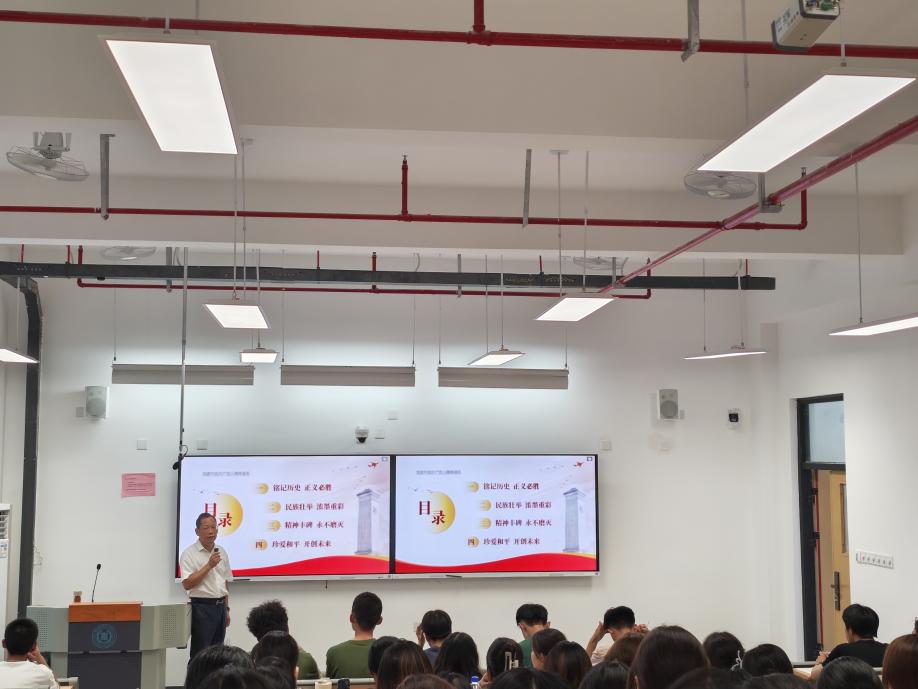 课堂上,王振亮副书记围绕“铭记历史 正义必胜”“民族壮举 浓墨重彩”“精神丰碑 永不磨灭”“珍爱和平 开创未来”四个方面展开深入讲解。