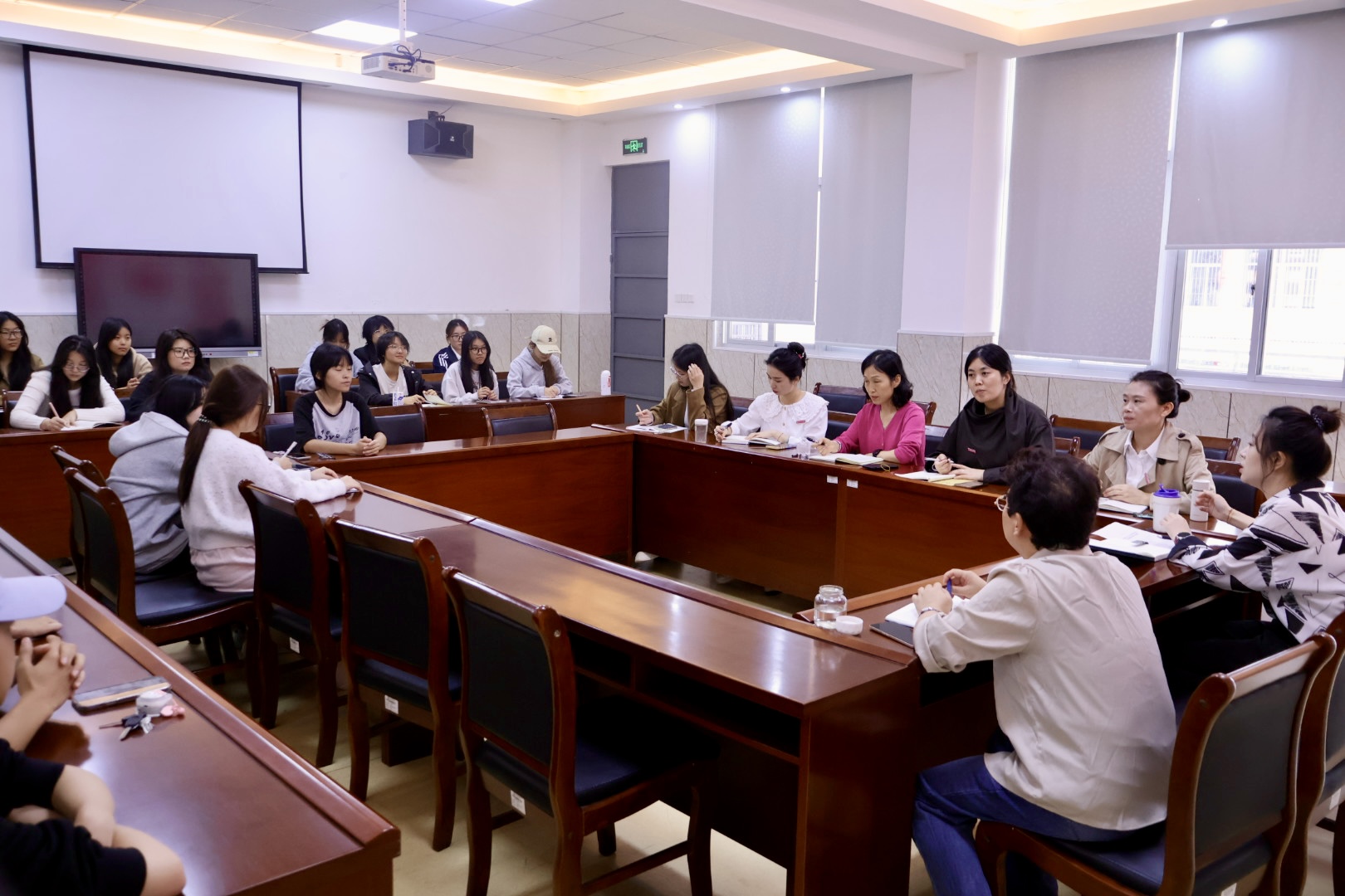 座谈会上,来自各班级的学生代表踊跃发言,气氛坦诚热烈。同学们结合自身日常学习体验与观察,聚焦课程知识结构的深度与广度、教学进度安排的合理性、教学方法与手段的创新性等议题,提出了具体而中肯的意见建议。与会教师认真聆听了每一位同学的发言,并就相关问题与建议进行了现场回应与解答。