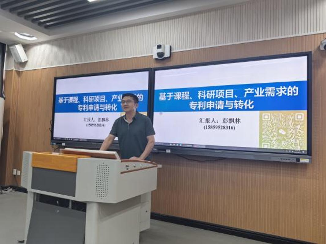 这场培训由黎明大学彭飘林博士主讲。他以“基于课程、科研与产业需求的专利申请与转化”为主题,系统讲解了专利挖掘、申请流程及转化路径。专家结合职业院校特点,提出“以课程激发灵感、以科研推动创新、以产业对接应用”的实践模式,并通过典型案例分析,讲解如何将日常教学与科研成果转化为具有市场价值的专利技术。