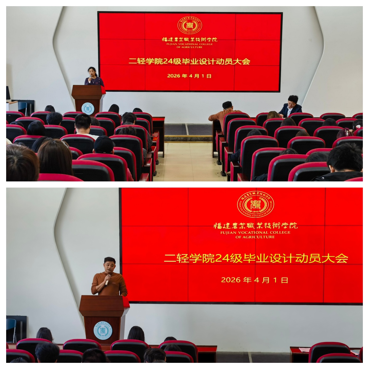 2026年4月1日下午,二轻学院在2号教学楼212室召开2024级毕业设计动员大会,学院领导班子、全体专业指导教师及2024级学生参加会议。
