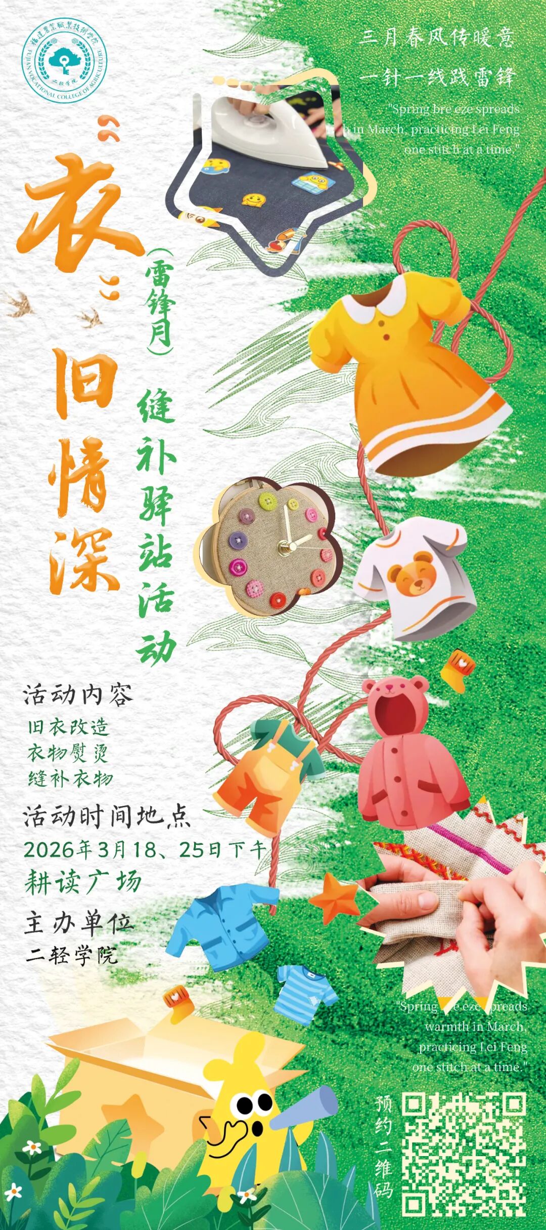 一件旧衣,一份牵挂;一针一线,皆是温情。这个三月,让我们用专业技能践行雷锋精神,让互助友爱的校园温情,在一针一线间静静流淌。
