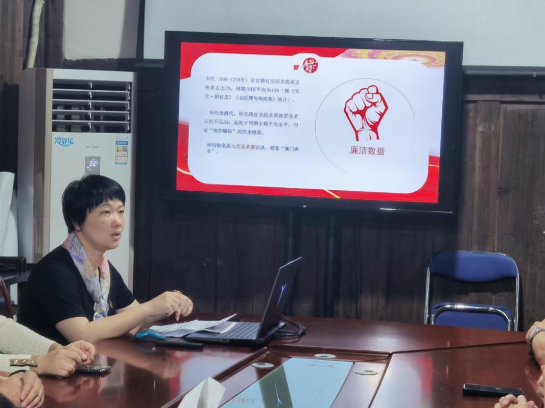 在侯官村“党员政治生活馆”会议室里,学院党委委员、副院长吴华以“涵养优良家风 筑牢廉洁防线——做忠诚干净担当的表率”为主题,为全体党员及入党积极分子带来了一场别开生面的微党课。吴华同志以党的二十届四中全会精神及习近平总书记的嘱托“清白做人、勤俭齐家、干净做事、廉洁从政、管好自己和家人”为切入点,以历代清官廉吏林则徐、沈葆桢、严复、吴石等伟人们的廉政担当为主线,引导新时代党员干部应在“晚清风流数侯官”的历史中聚焦侯官文化,学习其中所蕴含的热爱祖国、崇尚科学、严谨治学、创新创造、实干担当等宝贵精神。