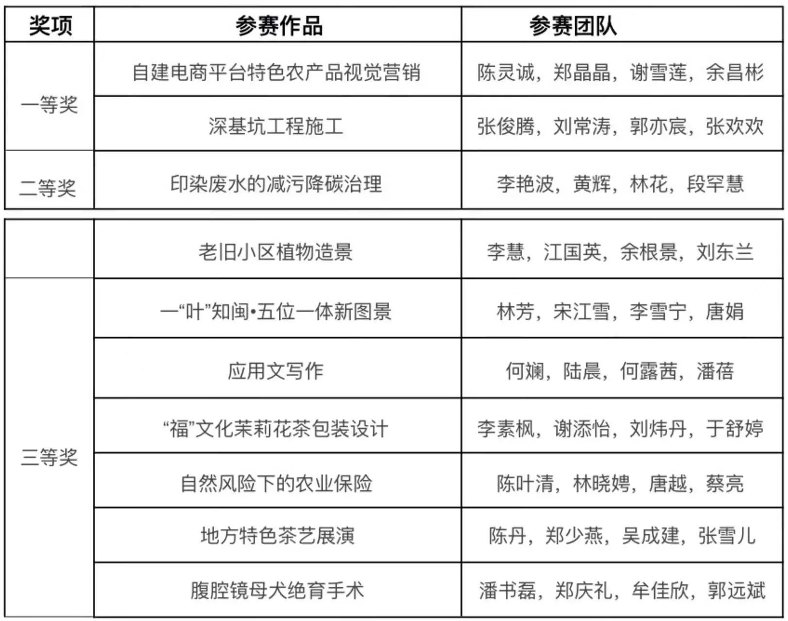 近日,2025年福建省职业院校技能大赛教学能力比赛(含中职思政)现场决赛落下帷幕,本次比赛共有406支教师团队参赛,其中中职组170支,高职组236支。我院选送的14支教师团队经过网络初评和现场决赛的激烈角逐,最终荣获一等奖2项、二等奖2项、三等奖6项,总计10个奖项,获奖数量较2024年省赛实现显著提升,展现出强劲的教学实力与团队活力。
