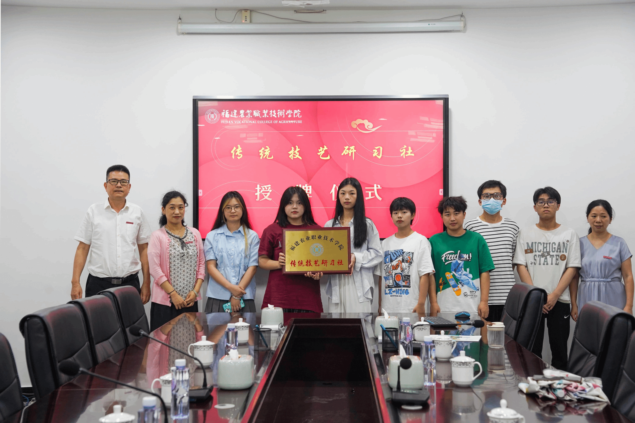 6 月 21 日,闽台楼 605 会议室暖意融融,福农传统技艺研习社成立仪式在此举行。学院党委委员、副院长侯志宏为研习社授牌,公共教学部主任李正心、美育教研室教师代表与学生代表共同见证。作为学院美育教育的新探索,研习社自成立便明确方向 —— 依托校内外 “非遗” 资源,让中华优秀传统文化与传统技艺进校园,在学生心中播下文化自信的种子。