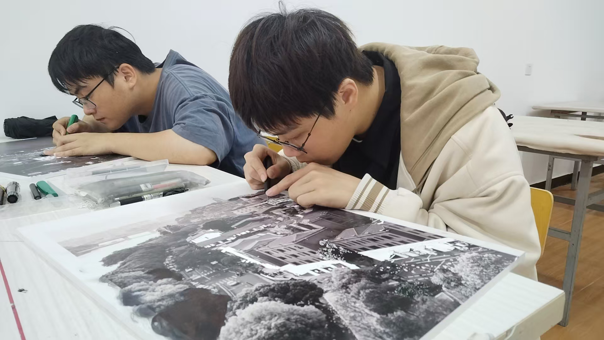 转眼到 2025 年春天,传统技艺研习社版画精品班再次开班。消息传出,吸引众多对非遗版画满怀热忱的同学报名,经筛选,艺术设计专业雷令金等 7 位同学脱颖而出,加入这个充满活力与挑战的集体。