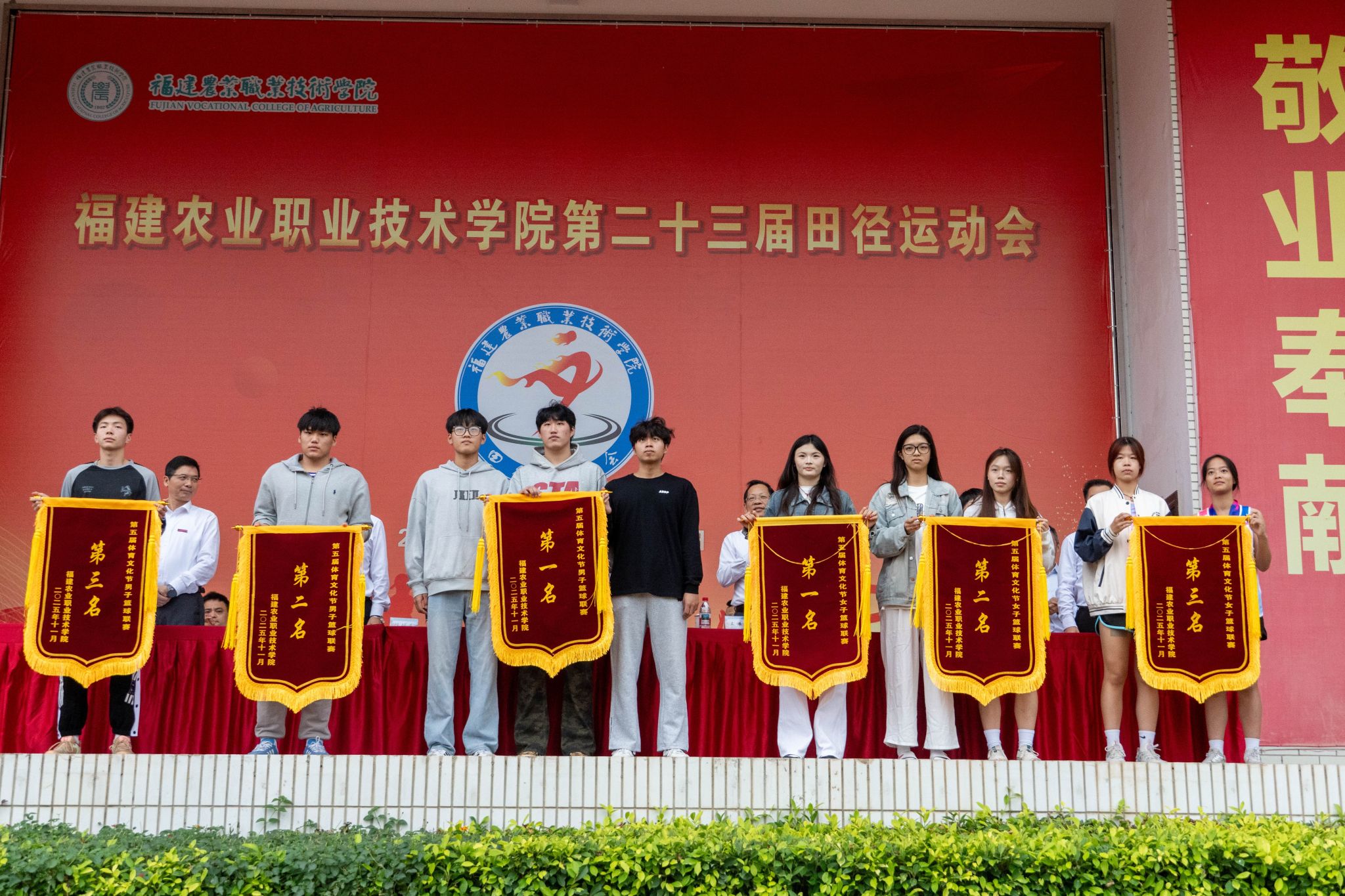 在裁判长宣读竞赛成绩之后,出席仪式的校领导为本届田径运动会与体育文化节相关赛项获奖单位和个人颁奖。
