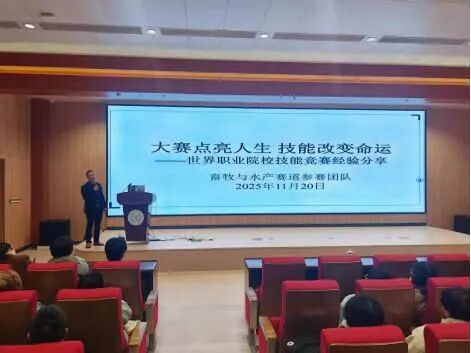 11月20日下午,学院召开全院范围的2026年福建省职业院校技能大赛备赛工作推进会,来自全院26个赛道、50支参赛队伍的指导教师与参赛选手齐聚一堂,共话备赛策略、共享实战经验。会议特别邀请2025年世界职业院校技能大赛畜牧与水产赛道(高职组)争夺赛金奖团队指导教师、动物科技学院副院长潘书磊作经验分享。潘书磊结合世赛备赛经历,从选题策略、团队协作、技术攻坚、心理调适等方面,分享了“以赛促学、以赛促练”的宝贵经验,详细拆解了备赛过程中如何对标国家标准、对接产业需求、突破技术瓶颈的实操方法,为各参赛队伍提供了可借鉴、可复制的备赛范本,引发全场热烈反响。