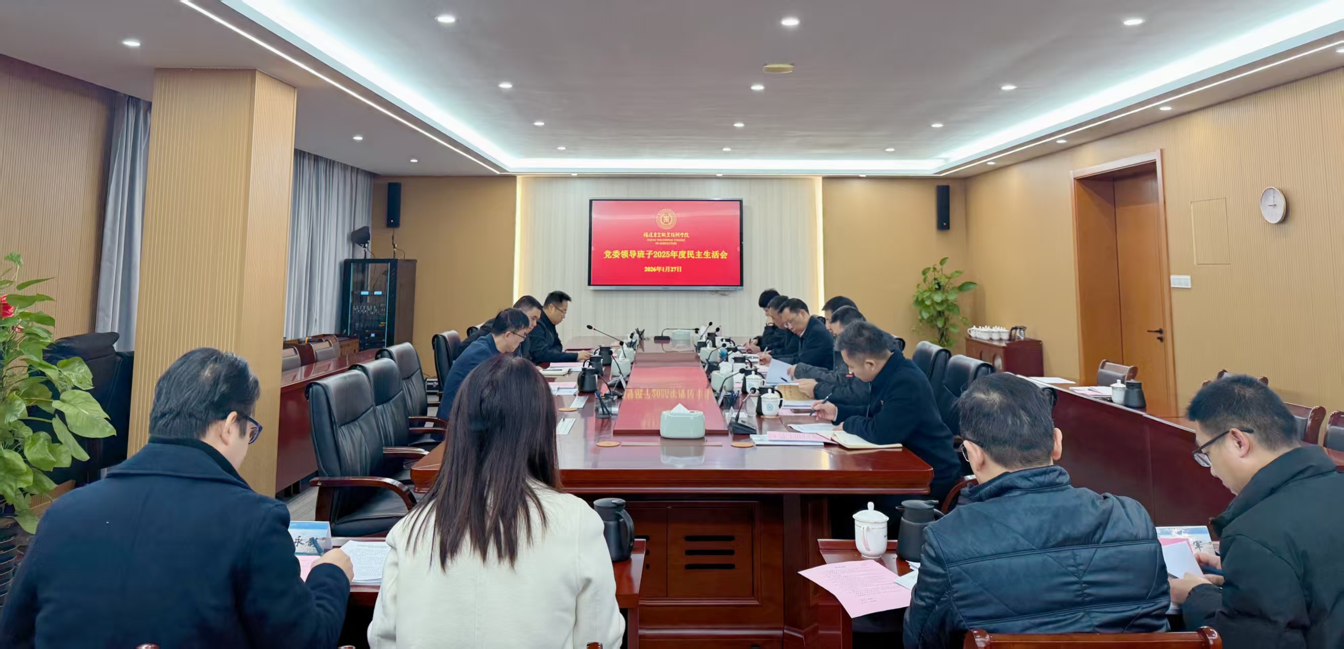 1月27日,学院党委领导班子召开2025年度民主生活会,省委教育工委督导组到会指导,党委书记杨振坦主持会议并作表态发言,学院党委班子成员参会。