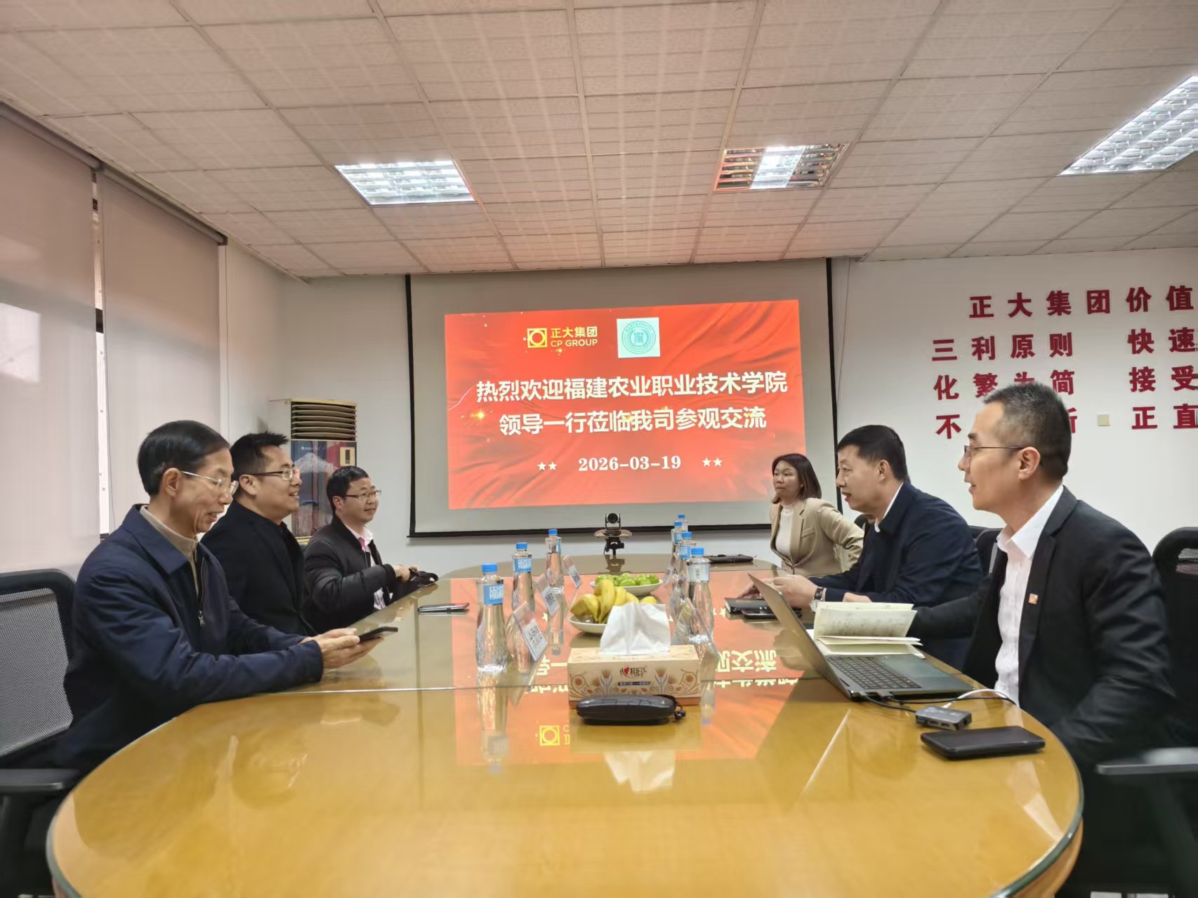 在厦门正大集团,总裁王贺介绍企业全产业链布局,双方就“订单班”共建、人才培养方案制定、课程体系建设等方面达成初步共识。杨振坦提出,将以订单班为抓手,推动校企合作向人才培养前端延伸,构建良性循环。