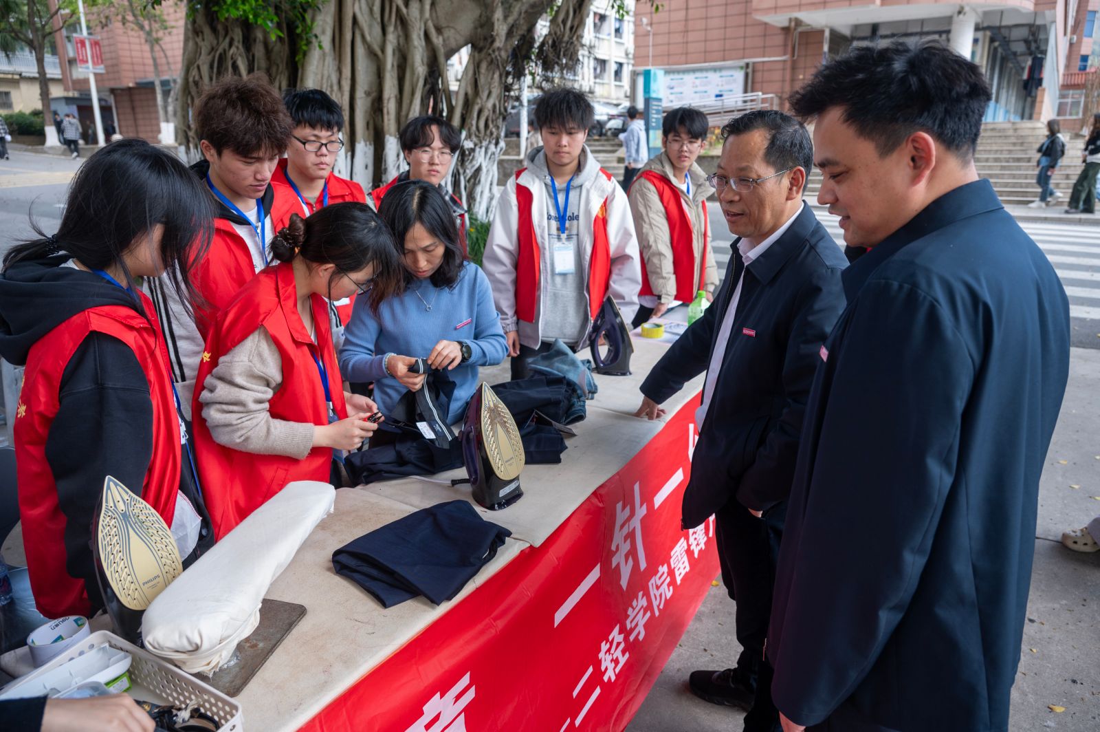 为弘扬新时代雷锋精神,倡导勤俭节约、互助友爱的校园文明风尚,二轻学院于3月18日、25日下午,在耕读广场分两期开展“‘衣’旧情深”温暖驿站志愿服务活动,为师生提供衣物缝补、熨烫等便民服务。