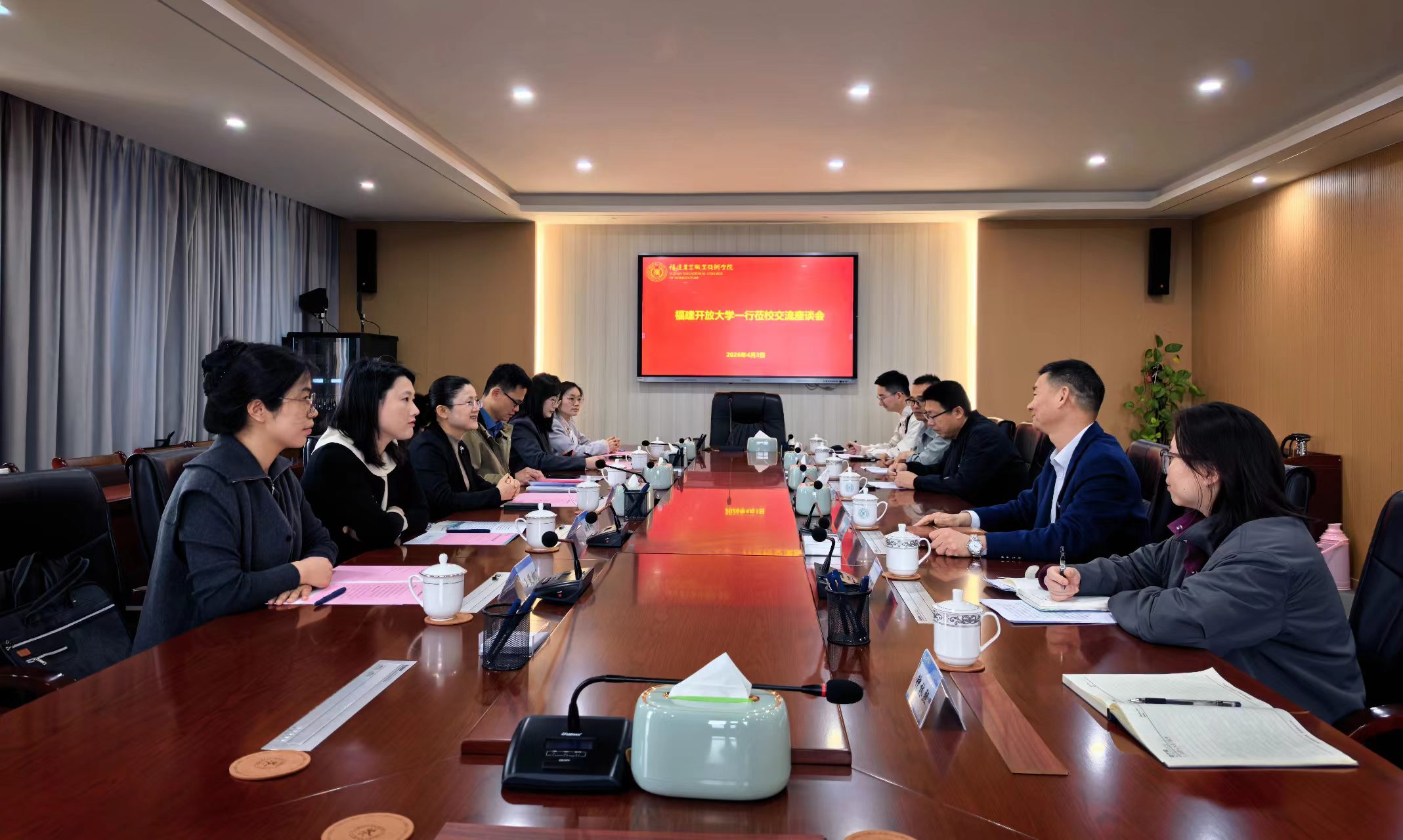 4月3日,福建开放大学党委委员、纪委书记、监察专员李琳一行6人莅临我校访问交流。我校纪委书记陈坛春及纪委办、组织部等相关人员参加座谈。