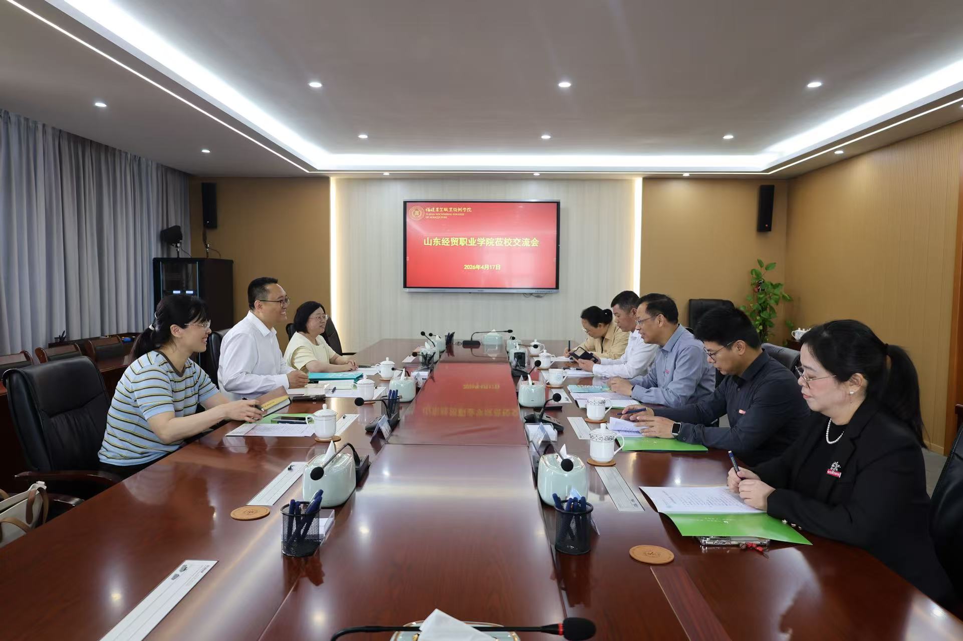 座谈会上,王振亮对吕昌锋一行表示热烈欢迎,他指出,兄弟院校到访是经验交流、共谋发展的良好契机,希望双方以此次交流为纽带,互学互鉴、互通有无,共同探索职业教育高质量发展新路径,并向对方赠予“福农记忆”红色校史书籍,传递两校情谊。随后,双方围绕师资管理与教师发展、创新创业教育等核心工作进行深入交流探讨。