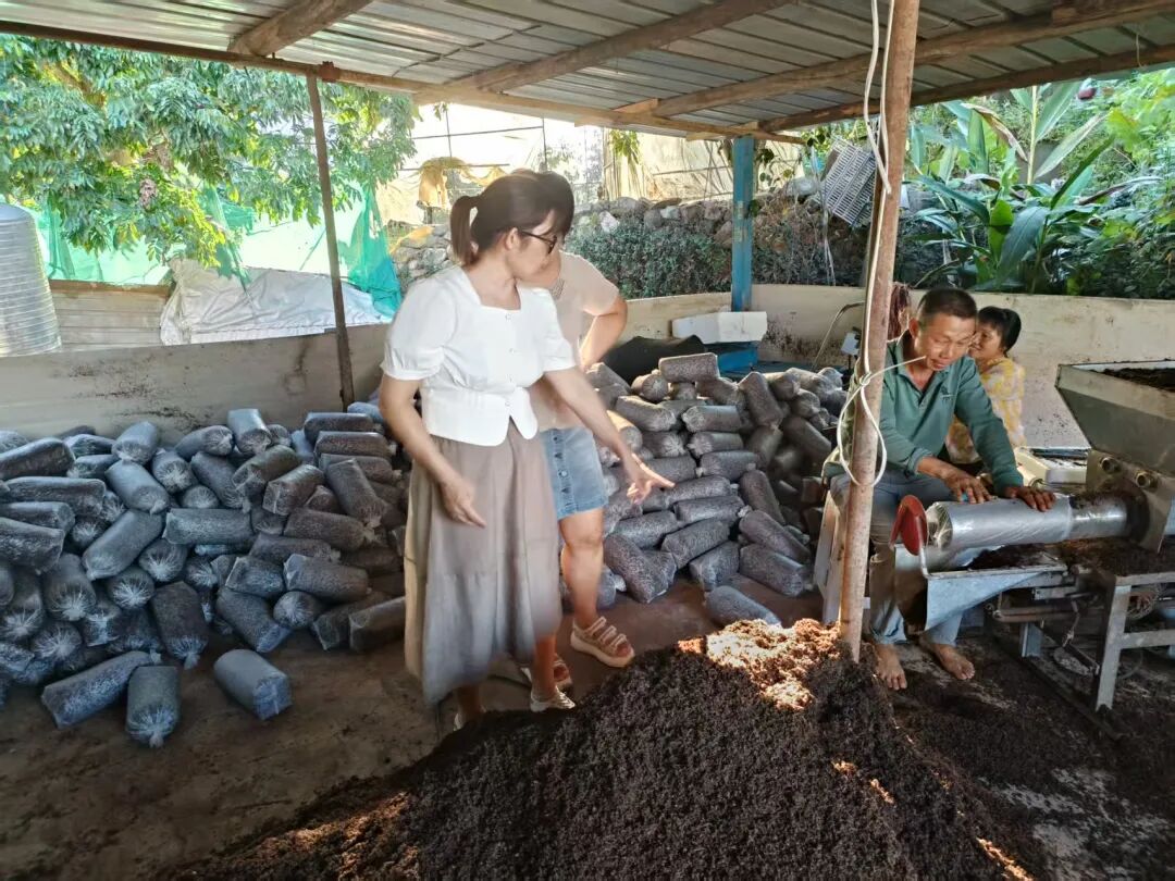 在合作社种植基地,付志英察看了苦瓜等蔬菜作物长势,针对植株整形、水肥调控、病虫害绿色防控等具体环节存在的问题,进行现场示范与系统讲解。她建议,要结合天气变化与作物生长周期实施科学水肥管理,并提出了操作性强的技术方案,助力合作社提升蔬菜种植水平。此外,她还深入菌料堆放场地和生产车间,就栽培料配比、堆制发酵、菌包制作规范及灭菌工艺等关键流程进行手把手指导,为合作社增产增收打下坚实基础。
