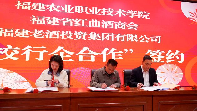 随后,福建农业职业技术学院与福建老酒投资集团有限公司、福建省红曲酒商会举行校行企合作签约仪式。双方将围绕闽派红曲黄酒的技术研发、人才培养、品牌提升等方面开展深度合作,标志着校行企三方协同推动福建省非遗特色产业发展迈入新的阶段。