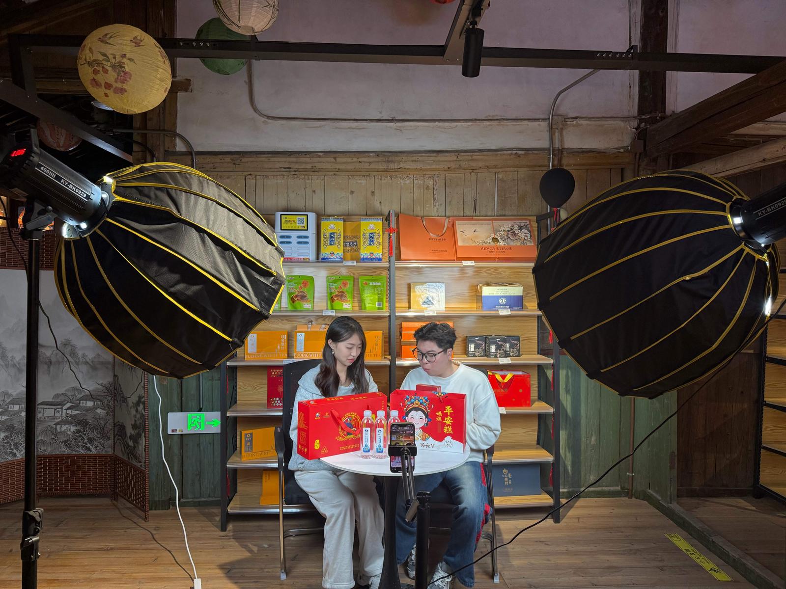 绶溪公园的夜晚,灯火如昼。“家人们,快看,这就是莆田红团,上面印着福字,象征团圆吉祥。”非遗市集里,实践队的小陈同学举着手机穿行其间,直播间人数不断增加。屏幕那头,众多网友也和实践队员一起“围观”了一场莆田年俗的现场直播。