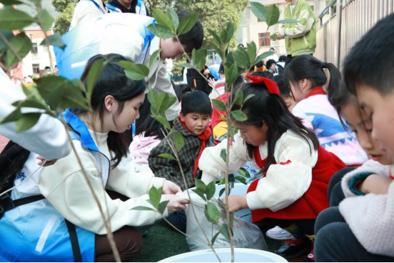 志愿者协同侯家斌小学学生参加植树节活动