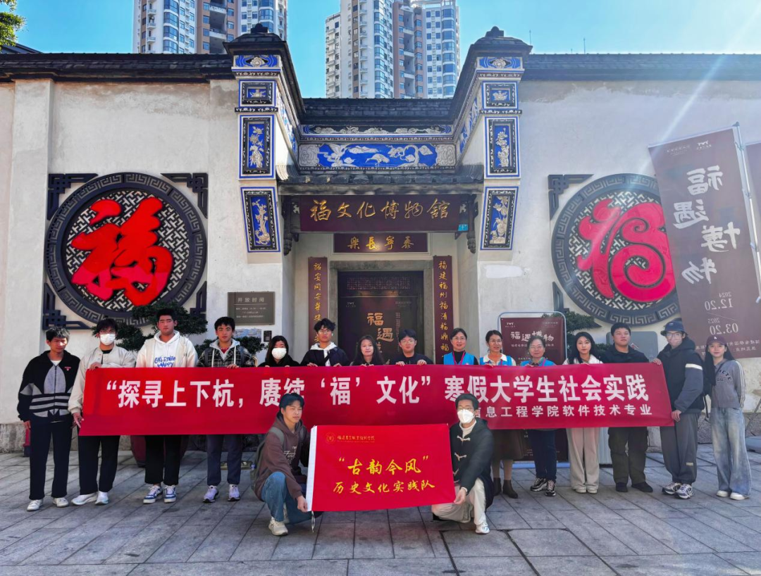 “福文化”作为中华优秀传统文化的瑰宝之一,承载着人们对美好生活的向往与追求。“古韵今风”历史文化实践队前往福州上下杭,在福文化博物馆了解福文化在福州的独特表现形式。在“苍霞人家”生活馆,铭记习近平总书记给广大群众的知心话“请给群众捎个话,政府会把好事办好”。在八闽商埠展示馆和闽侯侯官,见证福州商业繁荣的历史进程和“侯官文化”的深厚魅力。在三坊七巷、烟台山品尝特色美食,体验“三条簪”的虎纠特色之美,走进社区开展迎春志愿服务活动,为社区营造欢乐祥和的春节氛围。实践队切身领略到了福建春节“福”文化的独特魅力,以实际行动传承和弘扬这份深厚的文化遗产。