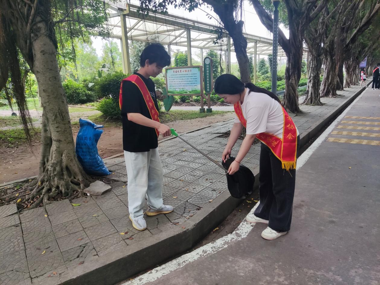 第二小组在院部区域开展“清烟头·倡文明”行动。学员们手持垃圾夹和环保袋,穿梭于绿化带、道路边角,细致清理散落的烟头和杂物,同时向路过师生倡导“无烟校园”理念,用躬身实践呼吁共建清新环境。