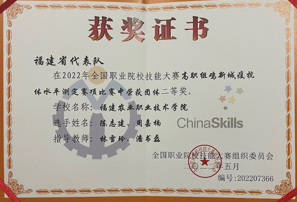2022年8月15-19日,2022年全国职业院校技能大赛高职组“鸡新城疫抗体水平测定”赛项在山东畜牧兽医职业学院举办。赛项汇聚了来自全国30个省(自治区、直辖市)的51支队伍参赛。
