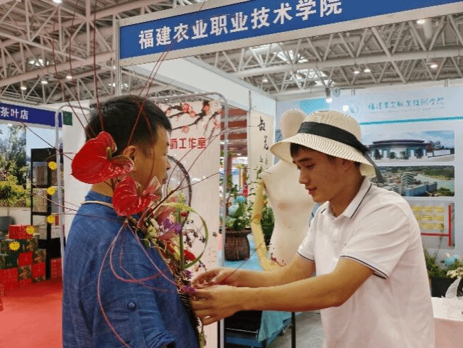5月18日,第二十五届海峡两岸经贸交易会在榕举办,福建农业职业技术学院园艺园林学院“花卉生产与花艺”专业和“茶艺与茶文化”专业的师生代表及新型职业农民班16级茶叶班学员彭能华、19级茶叶班郑成锦、22级茶叶班学员尤东洋以及三茶融合班学员王芳作为校企合作代表亮相“万里茶道国际茶文化产业展”。