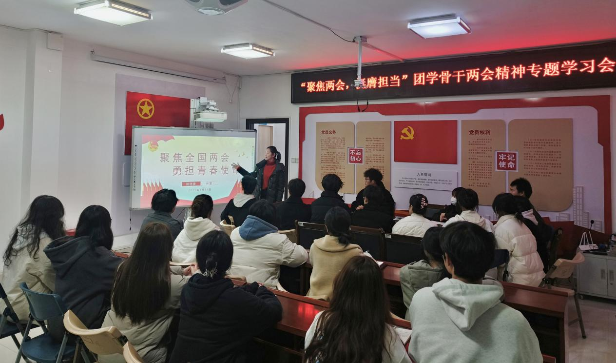 为深入学习贯彻2025年全国两会精神,引导广大青年深刻领会两会的重要意义,激发青年的责任感与使命感,3月31日,院团委在团委会议室召开团学骨干两会精神专题学习会。院团委林莹书记参加会议并做专题宣讲。