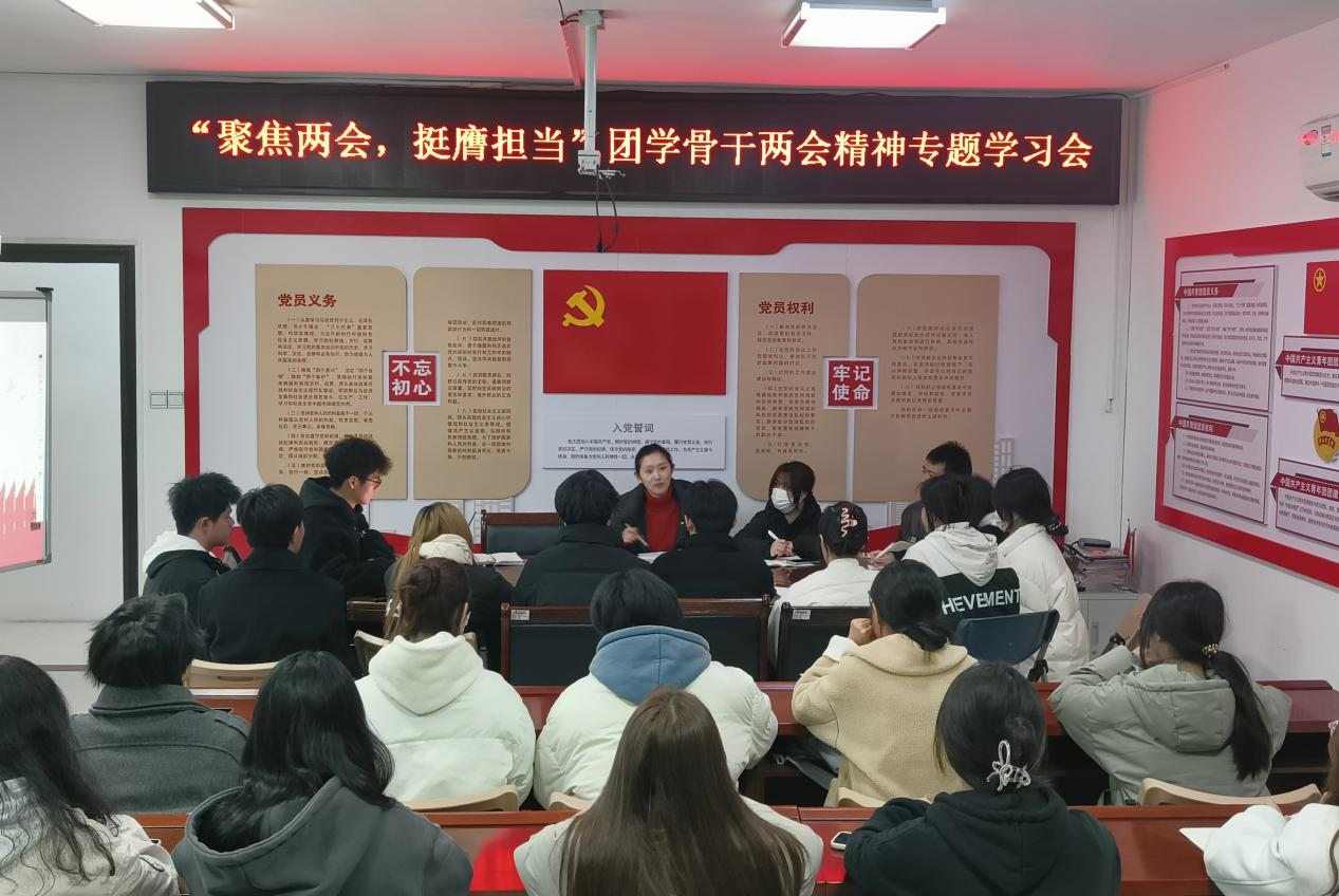 在交流讨论环节,与会团学骨干积极分享学习心得和感悟,结合自身学习和工作经验,探讨如何将两会精神更好融入到日常学生管理和服务工作中,更好地引导广大青年学生关注国家大事、投身社会实践。