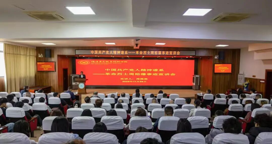 “25岁的青春,应当如何度过?”当这个问题抛向新时代的大学校园,答案或许多元。但在1945年的福建长乐东洛岛,一位名叫周裕藩的年轻人用生命作出了他最坚定的回答。近日,这位长眠于历史教科书的闽中抗日英雄,通过一段珍贵的家族记忆“走”进了福建农业职业技术学院的课堂。作为学院“传承红色基因 勇担时代使命”中国共产党人精神谱系宣讲会的主讲嘉宾、革命烈士周裕藩的孙女周微微女士,以《周裕藩烈士的革命生涯》为主题,为现场师生开启了一场跨越八十年的精神对话。