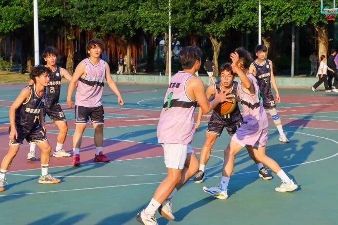 哨声响起,双方球员迅速进入状态:信工队员凭借高度默契的跑位与传球,攻防转换行云流水,一次次突破防线;动科队员也不甘示弱,化身“三分射手”,远投、抢断轮番上演,每次进球都引来全场欢呼,比分交替上升,赛场下的加油声此起彼伏。