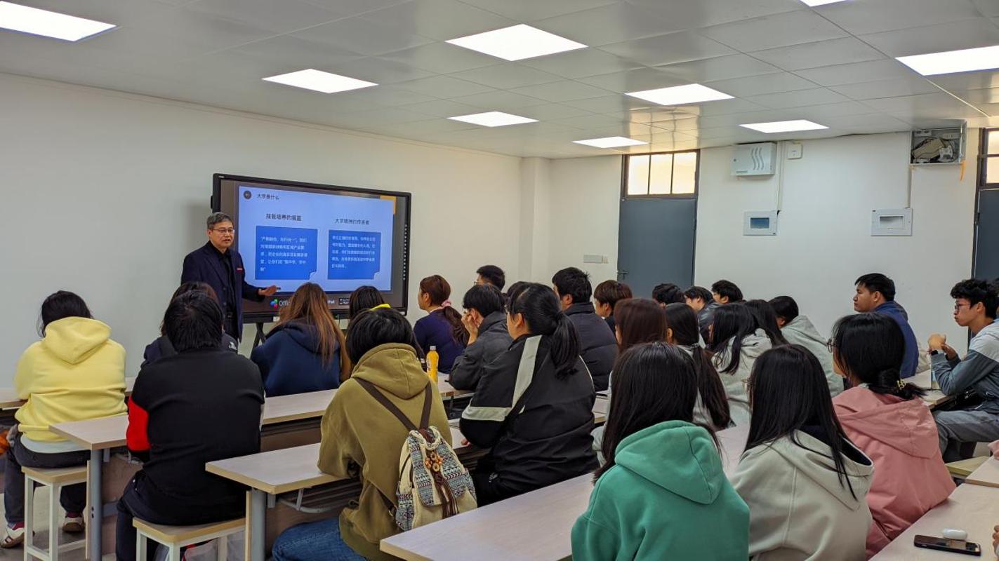 课程围绕“大学为何而来、要做什么、该怎么做、将收获什么”四重核心维度,从认知适应、任务聚焦、行动落实到目标展望,系统拆解大学生涯关键节点,为新生成长成才提供清晰路径指引。徐捷书记强调,大学是人生成长的重要起跑线,鼓励同学们主动适应环境变化,牢牢把握“学习、锻炼、相处”三大核心任务,以良好习惯筑牢成长根基,以阶段性目标推动稳步前行。他结合“勤学、修德、明辨、笃实”育人理念,指出大学既是专业能力的锤炼场,更是价值观塑造与人格养成的关键阶段,希望同学们在知行合一中实现从“被动成长”到“主动规划”的蜕变。课程内容充实、语言生动,引发新生强烈共鸣。同学们纷纷表示,通过学习进一步强化了规划意识与行动自觉。