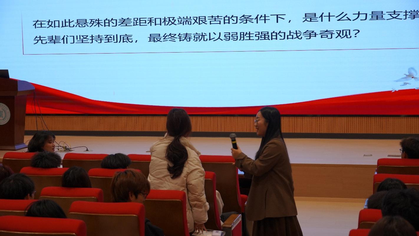 整场讲座兼具历史纵深感与时代鲜活度,理论阐释深入浅出,案例讲述动人心弦。学员们凝神聆听、认真记录,在庄严肃穆的抗战叙事中感受民族气节,在生动热烈的脱贫故事中体悟奋斗情怀。互动环节,学员积极发言,展现出青马学员扎实的理论素养与昂扬的精神面貌。