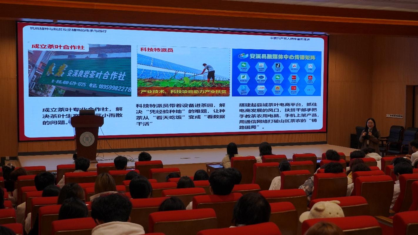随后,课程视角转向波澜壮阔的新时代脱贫攻坚战场。唐娟老师以福建安溪铁观音产业带动百姓增收致富、下党乡实现脱贫振兴等鲜活实例,生动呈现了脱贫攻坚的伟大实践。这场人类减贫史上的奇迹背后,凝聚着“上下同心、尽锐出战”的磅礴力量、“精准务实、开拓创新”的智慧担当、“攻坚克难、不负人民”的初心使命。从抗战时期的“为家国而战”到脱贫攻坚时期的“为幸福而拼”,两种精神虽诞生于不同时代,却始终贯穿着中国共产党的初心使命和中国特色社会主义制度的强大生命力。
