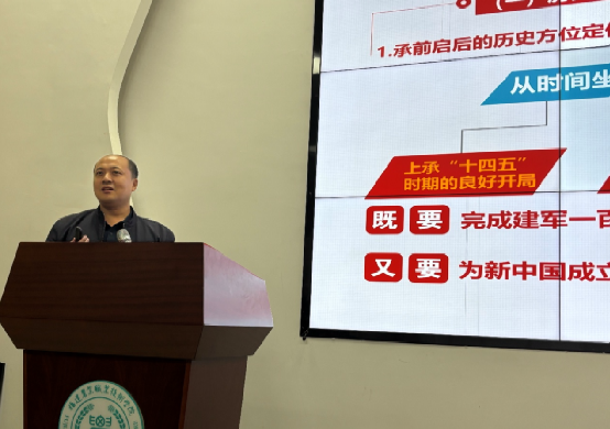 12月11日晚,现代农业技术学院党总支书记欧高政以“学习贯彻党的二十届四中全会精神 奋力开创中国式现代化新篇”为主题,为全体青马学员作专题授课。重点聚焦国家“十五五”时期发展重要着力点与青年使命担当,引导学员深入理解党的二十届四中全会精神内涵与青年责任。