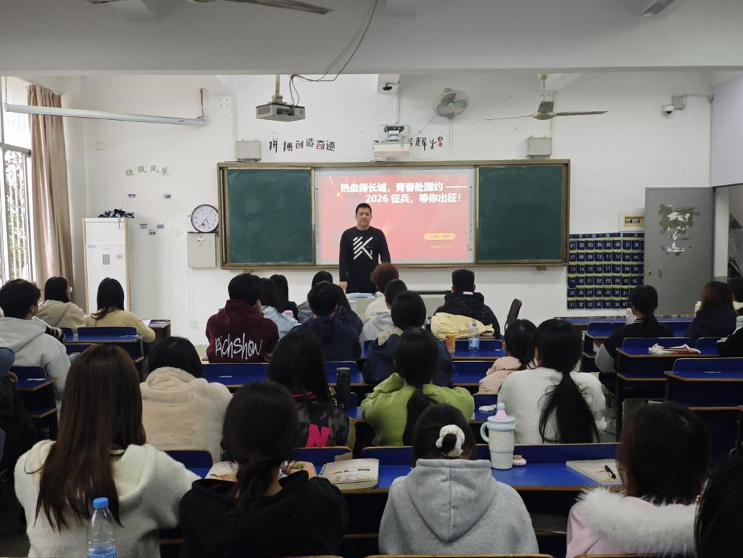 班会现场,各班辅导员聚焦征兵核心政策展开全面解读,针对应征年龄、身体条件、政治审查、视力标准、体测项目等基础要求逐条进行说明,确保同学们对入伍基本门槛有深入了解;同时,系统梳理报名时间节点、线上填报流程、材料准备清单等实操要点,重点解读学费补偿代偿、升学优惠等激励政策,让同学们知晓入伍全流程及相关政策保障。