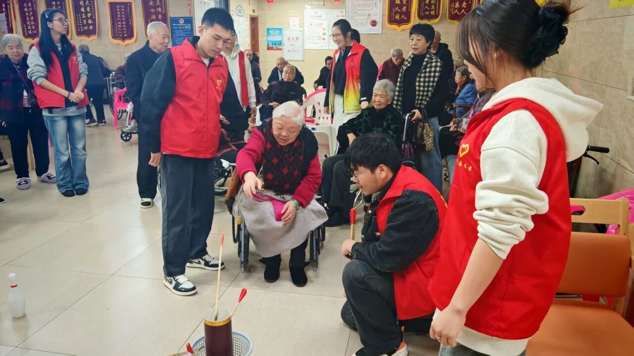 3月21日上午,志愿者的再次来到了康养养老公寓。为了让老人们的生活增添更多乐趣,志愿者们策划了一场趣味横生的游园活动。现场精心设置了投壶、趣味保龄球等适合老年人参与的互动游戏。老人们在志愿者的引导和鼓励下踊跃尝试,每一次投掷都伴随着阵阵掌声与欢笑,现场气氛热烈而温馨。