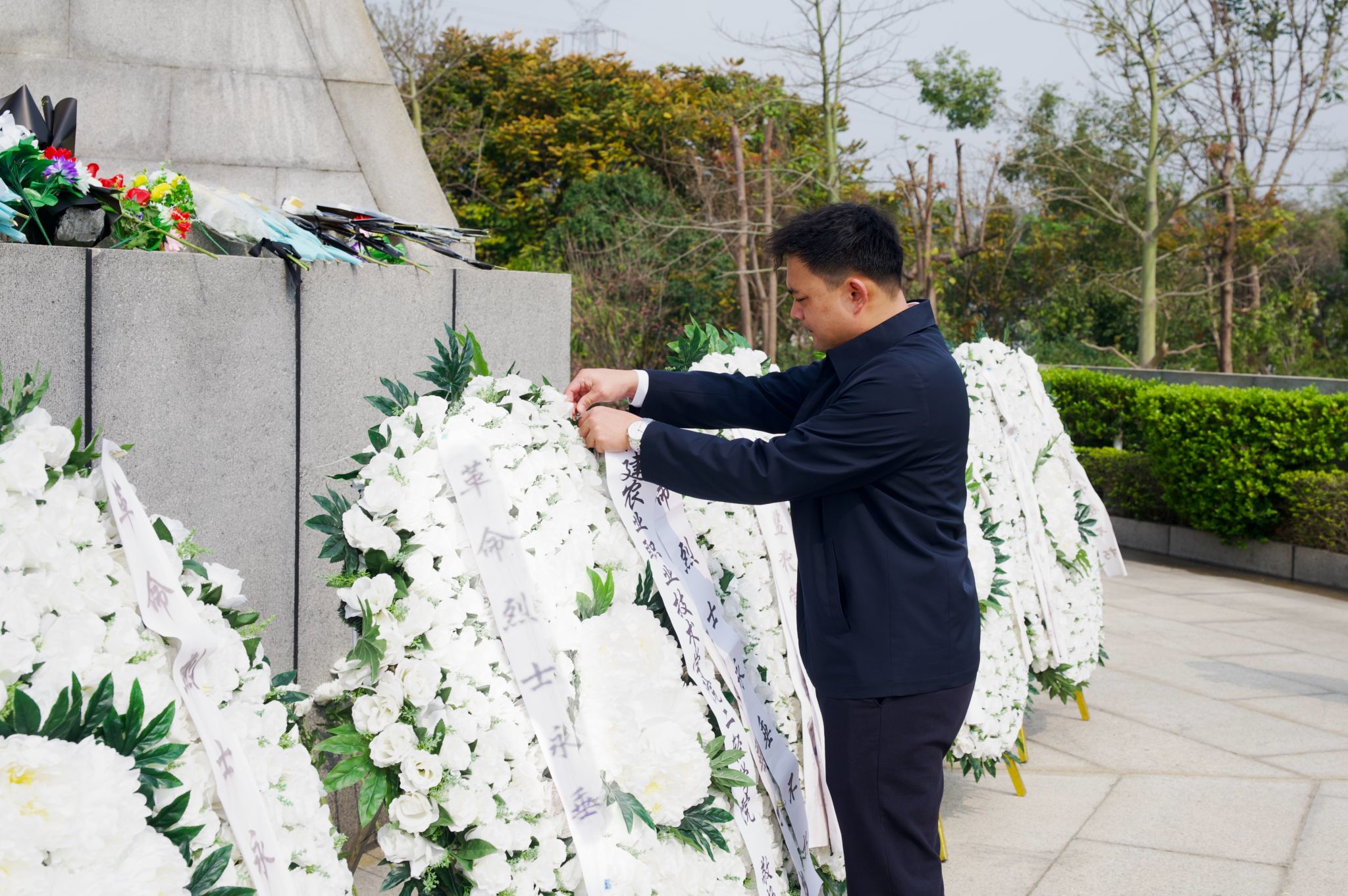 上午9时,活动在庄严肃穆的氛围中启动。全体人员怀着崇敬之心在革命烈士纪念碑前整齐列队,向英烈敬献鲜花。学院党总支副书记(主持工作)张一宁代表学院敬献挽联 “革命先烈永垂不朽”,表达对革命先烈的深切缅怀与崇高敬意。默哀仪式结束后,大家依次缓步走向纪念碑,献上手中鲜花,以质朴庄重的方式,寄托哀思、致敬英烈。
