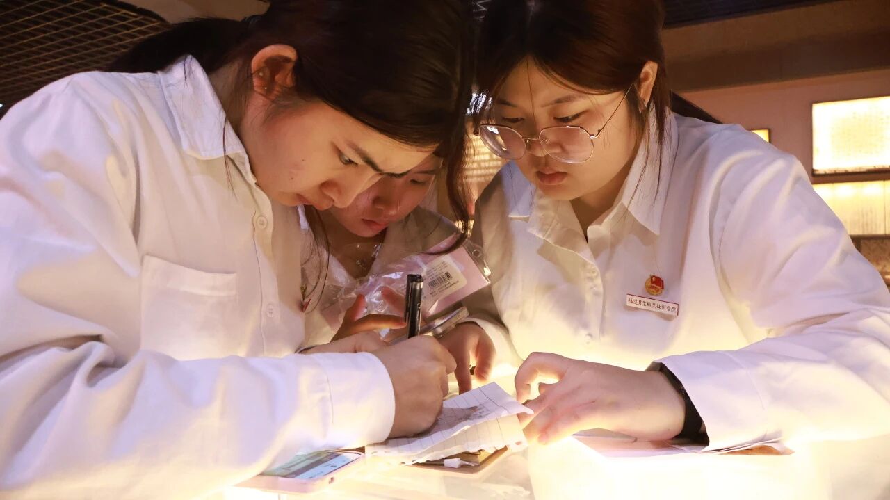 随后,学员们转入"侨批馆之驿里巷"实景剧本杀沉浸式体验环节。手持解谜手账,化身历史侦探,跟随闵掌柜与阿青等虚拟角色的指引,学员们在复刻的民国街巷中抽丝剥茧、凝神思考,循着关键线索层层推理、协同闯关。令人惊喜的是,所有谜题的答案都藏在前期讲解员讲述的历史细节与研学知识点之中,凭借脑海中清晰的记忆,大家一步步破解侨批暗语、拼合信局印章、追踪失踪邮路,顺利通关。活动现场氛围热烈浓厚,率先完成挑战的同学主动返场伸出援手,耐心协助尚未通关的同伴,互帮互助、携手共进,在沉浸式互动中凝聚起团结协作的青春力量,也让历史知识在趣味实践中真正入脑入心。从一楼互动区的写批寄批体验,到二楼驿里巷的失踪侨批追踪,学员们亲手雕版印刷、盖章核验,完整复刻了侨批从书写到投递的生命历程,长达一个半小时的沉浸式探索,让档案文献真正活在了青春记忆里。