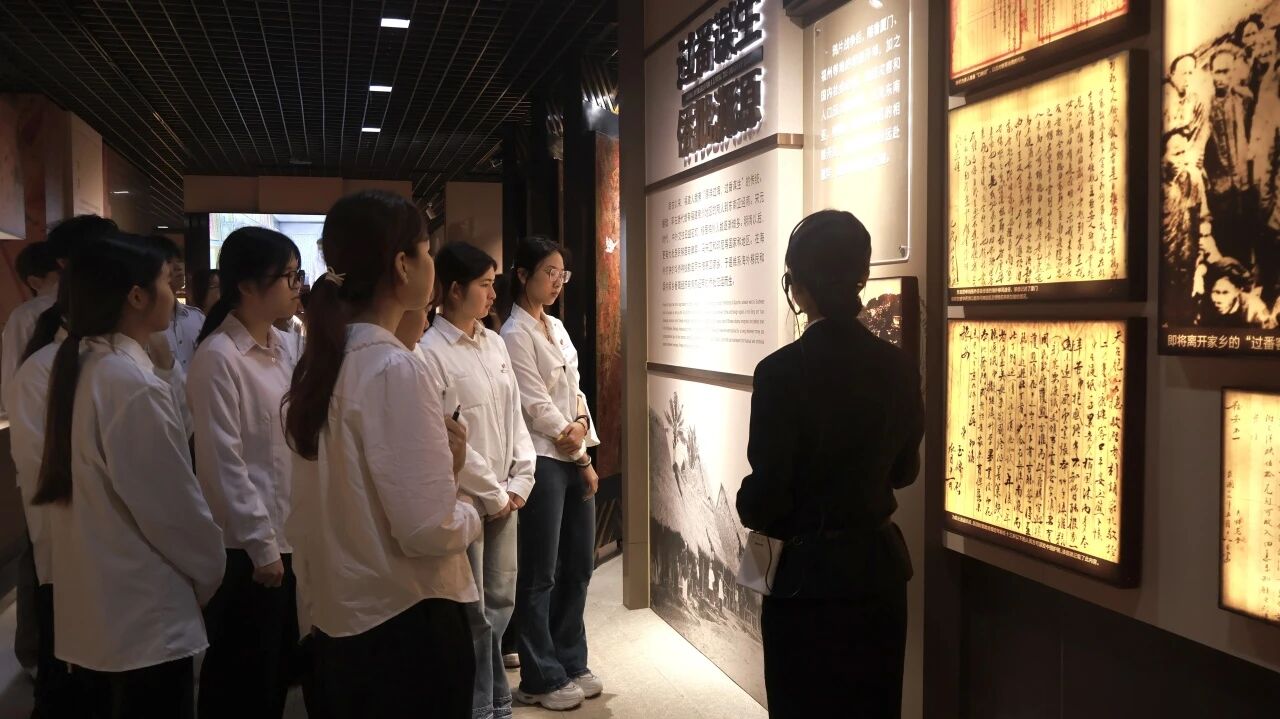 在专业讲解员的带领下,学员们循着历史的足迹缓步前行,认真聆听每一段红色往事与家国故事,驻足细看馆内珍贵的文献资料、历史影像与实物展品。墙上镌刻的侨批信件、展柜里的跨国两地书、泛黄影像中的南洋往事,无声诉说着海外华侨爱国爱乡、海纳百川、乐善好施、敢拼会赢的精神图谱。一封封侨批是跨越山海的亲情纽带,更是赤子报国的历史见证,学员们真切触摸到先辈们心系家国、无私奉献的情怀,历史的厚重感化为精神的感召力,深深烙印在每一位青马学员心中。
