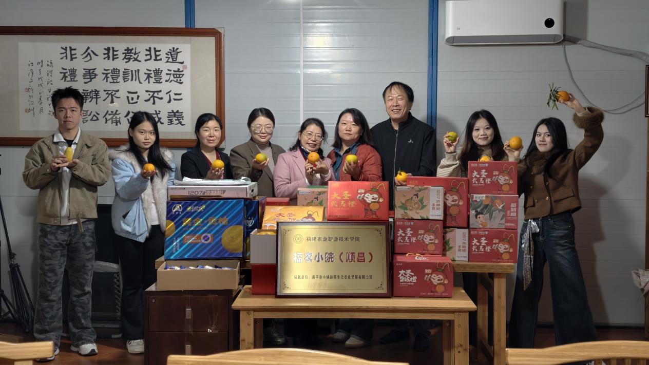 次日上午,团队在顺昌县妇联主席陈晓红陪同下,来到南平市小城故事生态农业发展有限公司的最武夷柑橘产地与洋墩乡柑橘采摘园。在柑橘园里,成员们与小城故事公司总经理叶雅英深入交谈,了解不同品类柑橘的生长周期与品质特点,为柑橘拓宽销售渠道出谋划策。同时,直播镜头再次开启,金黄饱满的柑橘挂满枝头,成员们热情洋溢地推介,吸引了众多观众驻足,在线人数超过1000人。团队希望以短视频+直播赋能乡村产业,助力企业拓宽营销渠道、提升品牌影响力,同时落地校企合作实效,推动农产品走向更广阔市场。