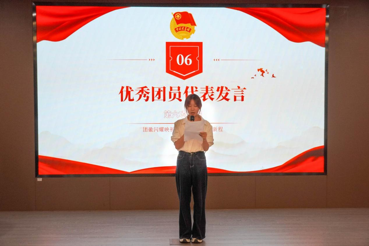 接着,现代物流管理2401班张诗颖作为优秀团员代表分享了自己在团组织的成长感悟,鼓励新团员珍惜青春时光,在思想上追求进步、学习上刻苦努力、生活中严于律己,在团组织中锻炼成长、提升自我,争做同学榜样。