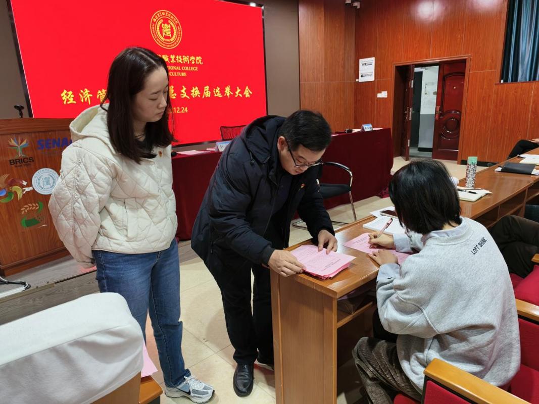 大会在庄严的中华人民共和国国歌声中拉开序幕。会上,全体党员集中学习了《中国共产党基层组织选举工作条例》,为换届选举工作的顺利开展筑牢思想根基和制度遵循。随后,彭阔东副书记宣读了学院党委的相关批复。大会审议并一致通过了大会议程、上一届党总支委员会工作报告及《经济管理学院党总支换届选举办法(草案)》,表决通过了总监票人、监票人、计票人名单。