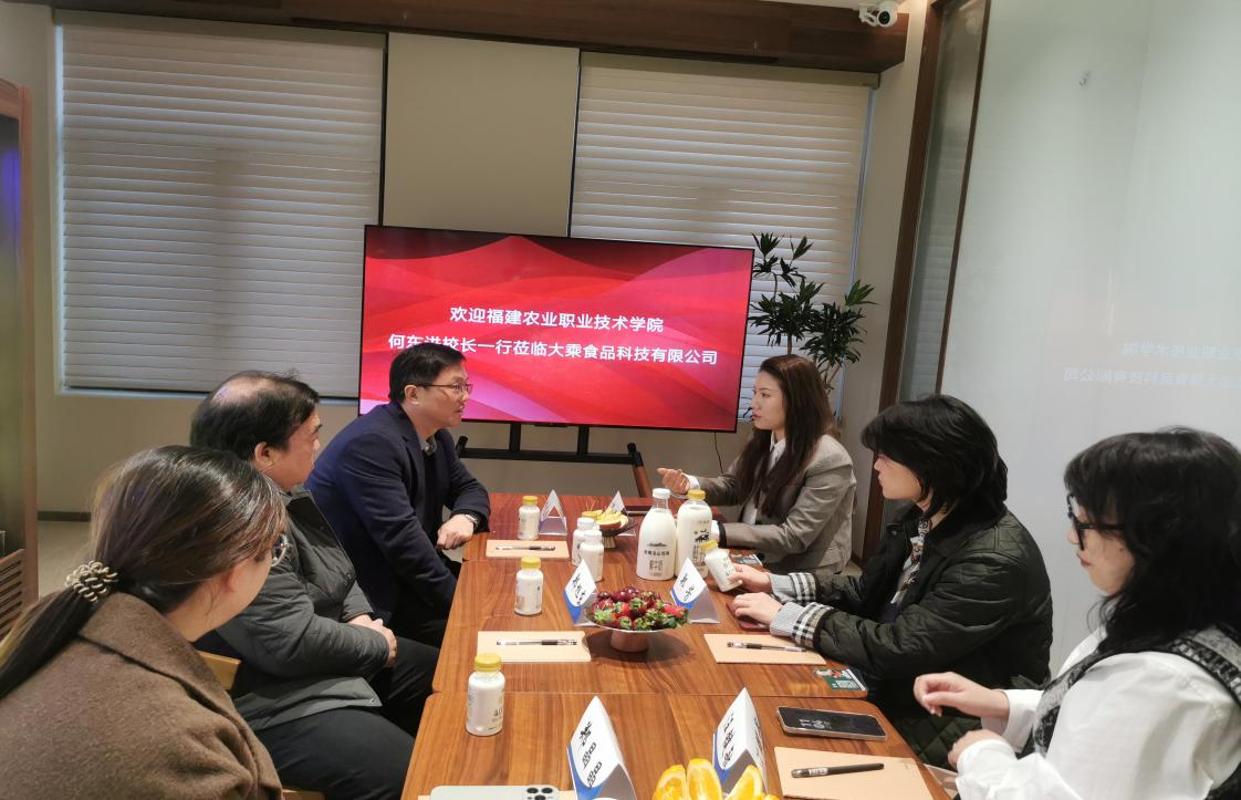 最后,何东进院长一行抵达福建大乘食品科技有限公司。座谈会上,公司副总邱娟校友、市场部经理汪键敏介绍了公司深耕食品制造、销售领域的发展历程,双方聚焦学生实习实训、就业岗位输送等核心议题达成共识,明确将建立常态化沟通机制,通过共建特色订单班、企业外聘教师等举措,实现人才培养与产业需求的精准对接。