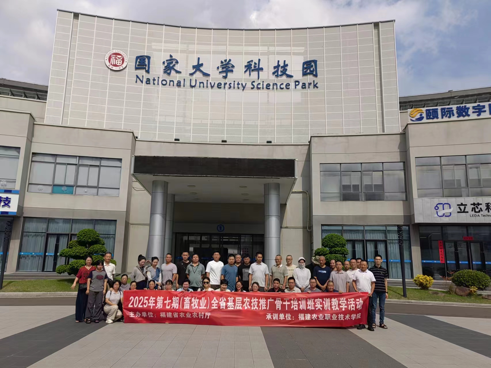 2025年9月7日至12日,由福建省农业农村厅主办、福建农业职业技术学院承办的“2025年第七期(畜牧业)全省基层农技推广骨干培训班”在学校首山校区成功举办。来自全省各地的80名基层农技推广人员顺利完成培训任务,为推进福建省畜牧业现代化发展注入新动能。