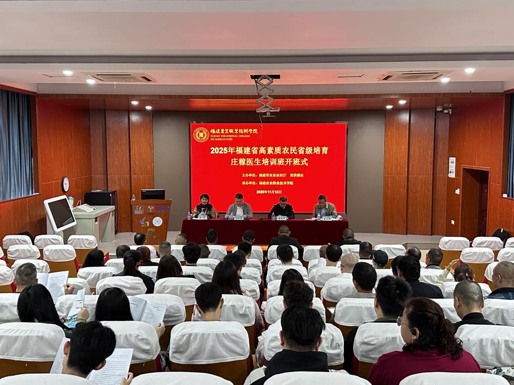 2025年11月12日至18日,由福建省农业农村厅主办、福建农业职业技术学院承办、福建省供销社调训的“2025年福建省高素质农民培育庄稼医生培训班”在学校首山校区成功举办。来自全省各地的50余名农资业务骨干、农场负责人及合作社代表顺利完成培训,为破解生产难题、提升农业质效注入新动能。