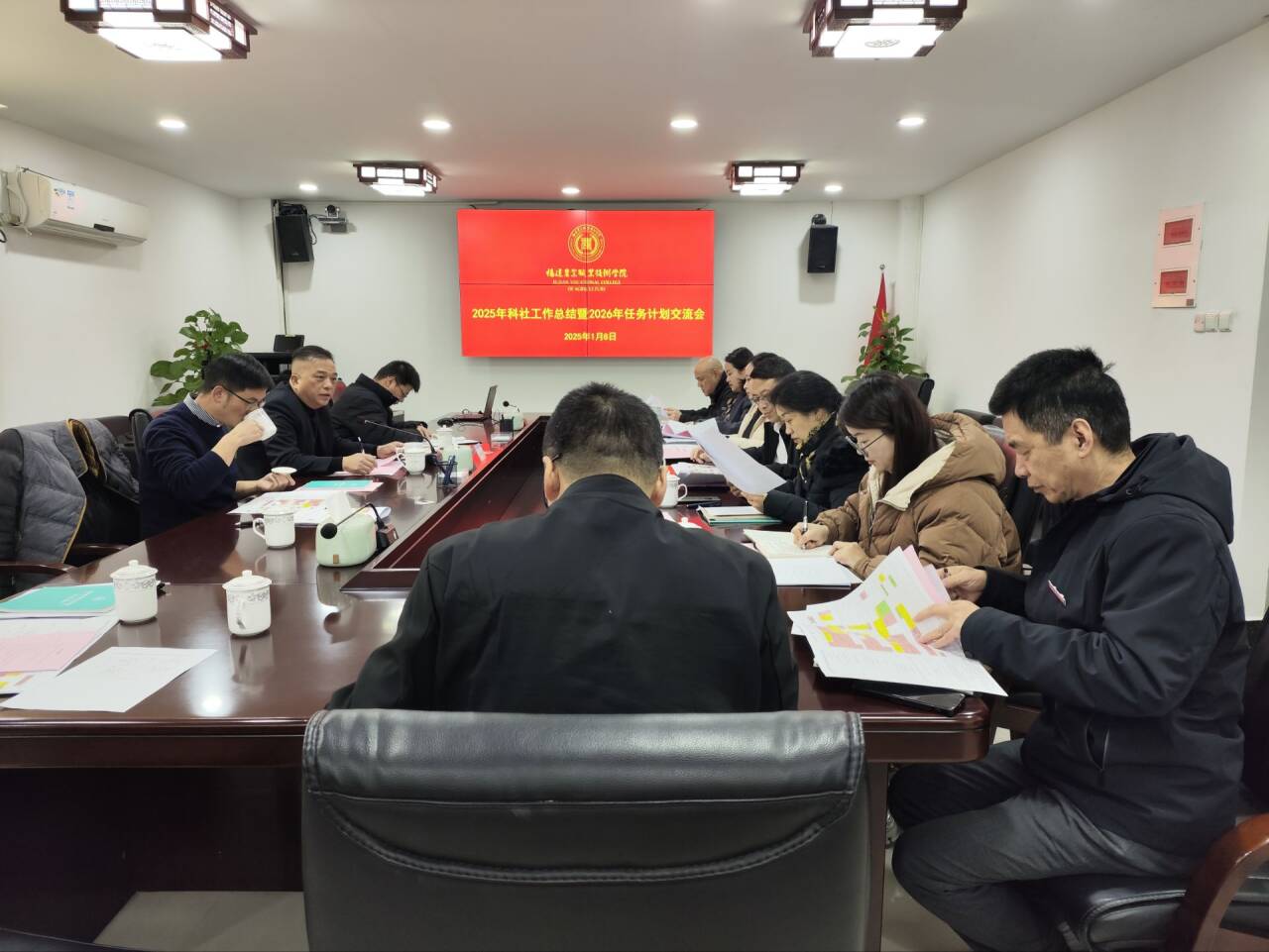 2026年1月8日上午,学院在闽台楼708会议室召开2025年科研与社会服务工作总结暨2026年任务计划交流会。副院长严挺文主持会议,科研与社会服务处负责人、各二级学院负责人及相关工作人员参加会议。