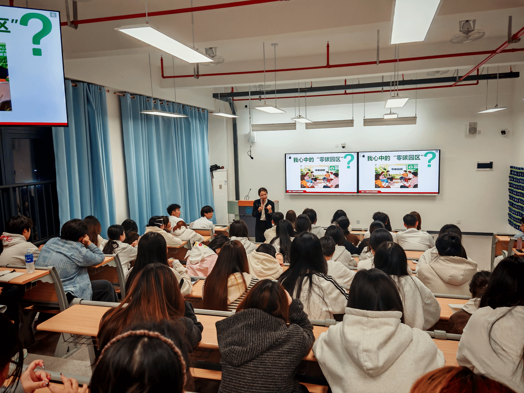 我院郑丽萍老师紧紧围绕学习贯彻党的二十届四中全会精神,结合高职学的特点,聚焦“十五五”时期经济社会发展的“美丽中国建设取得新的重大进展”这一目标,开展题为“驭‘碳’索‘绿’,向美而行”的主题宣讲,运用鲜活的本土案例,从加快构建实施碳排放总量和强度双控制度、加快能源绿色低碳转型、加快产业结构绿色低碳转型及加快生产生活方式绿色低碳转型等四个维度讲清楚“十五五”时期美丽中国建设的重要部署。