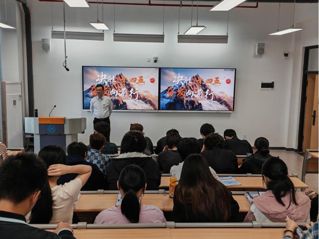 10月31日上午,院长何东进在动物科技学院701教室为动物医学2403班学生讲授“决胜‘十四五’ 奋发向前进”的专题思政课。