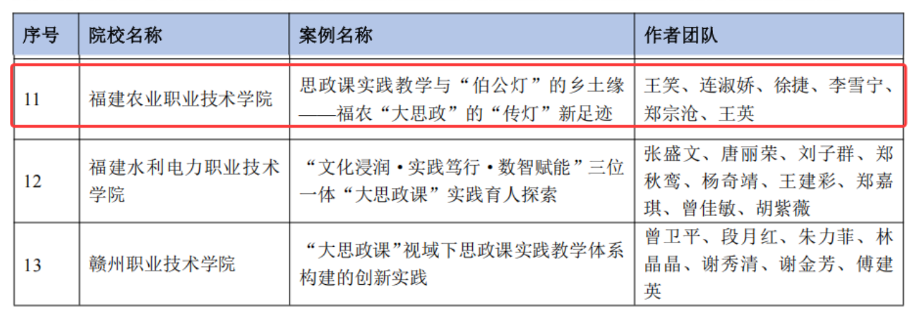 近日,由高等教育出版社、新华网联合开展的2026年全国高校“大思政课”实践教学典型案例征集活动入围名单公布,全国共确定292个典型案例。我校马克思主义学院申报的《思政课实践教学与“伯公灯”的乡土缘——福农“大思政”的“传灯”新足迹》成功入选。